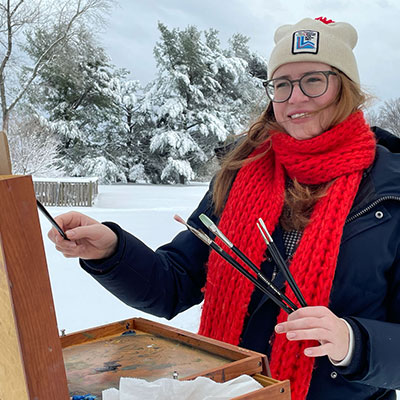I strive to create art that resonates deeply with people, painting en plein air whenever possible to capture the spontaneity of life. My style and process are shaped by a unique perspective, drawing inspiration from the natural beauty and landscapes of New England. The changing seasons and fleeting moments constantly influence my color palette and approach.